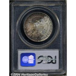 <B>1826<50C> MS62 PCGS.</B></I> O-120a, R.3. On this variety, the 26 of the date is higher than 18, the arrowheads are flat, close, and connected by small defects, a die crack extends through UNITED STAT, and another crack goes from just above the U in UNITED and circles down across the leaves and 50 C. to arrowheads. This example is light golden-orange with aqua-blue accents along the lower and left obverse border, and violet coloration along the lower and left reverse border. The central and right border areas of the reverse are basically untoned. The surfaces are well preserved and emit pleasing luster. A small mark is seen on Liberty's throat, and may well limit the grade. All in all, this is a very attractive Capped Bust half dollar that is perhaps conservatively graded. <BR><BR><B>Important notice:</B> Heritage usually auctions material at the rate of 200-250 lots per hour. On some occasions eBay Live bid software or the Internet may not be able to keep up with the pace of the auction. We recommend placing a realistic absentee bid now as insurance to avoid disappointment. Occasionally the auctioneer may eliminate or reject an eBay Live bid, and the auctioneer may also reopen a lot after the close of the eBay live bidding (usually because we missed an audience bid), and may reject your bid even if it shows you as the winning bidder. By bidding via eBay Live, you agree that Heritage may award the lot to another bidder at its sole discretion under the circumstances described above or any other reasonable circumstances. Since eBay bids are not shown to us until we open the lot on the floor, we treat those bids just like floor bids. In most cases the floor responds before the eBay bid is presented to us, due to Internet lag time, so for consistency we have made it a policy that floor bids are always considered first over tie eBay live bids. Also please note that all Heritage lots purchased through eBay Live carry a 20% Buyer's Premium. Please make sure you read the Terms and Conditions before you bid. </span></font></tr></table></td></tr></table>