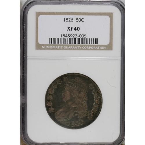 <B>1826 50C XF40 NGC.</B></I> NGC Census: (25/972). PCGS Population (56/883). Mintage: 4,000,000. Numismedia Wsl. Price for NGC/PCGS coin in XF40: $82. (#6143)<BR><BR><b>Shipping:</b> Coins & Currency (<a target="_blank" href="http://www.heritageauctions.com/common/shipping.php">view shipping information</a>)