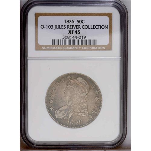 1826 50C XF45 NGC. O-103. R.5. Mottled blue, gold, and 1826[50C] XF45 NGC.
