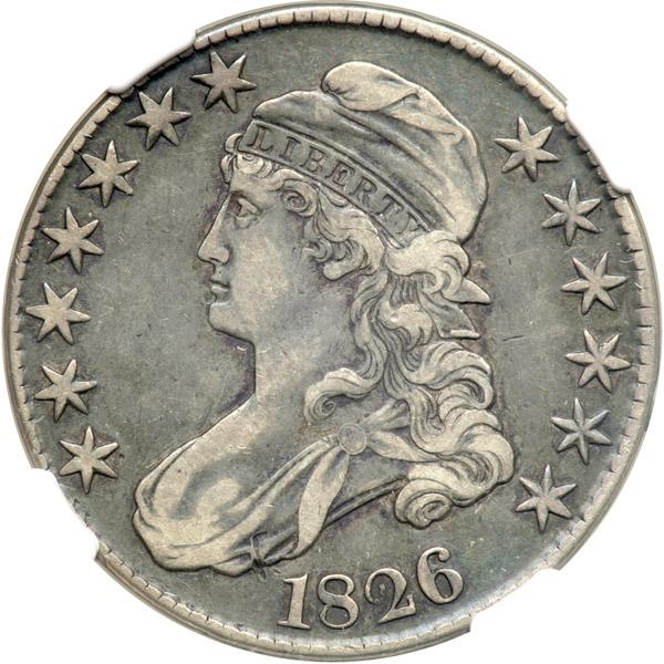 1826. NGC graded EF-40. Even antique toning on both sides.