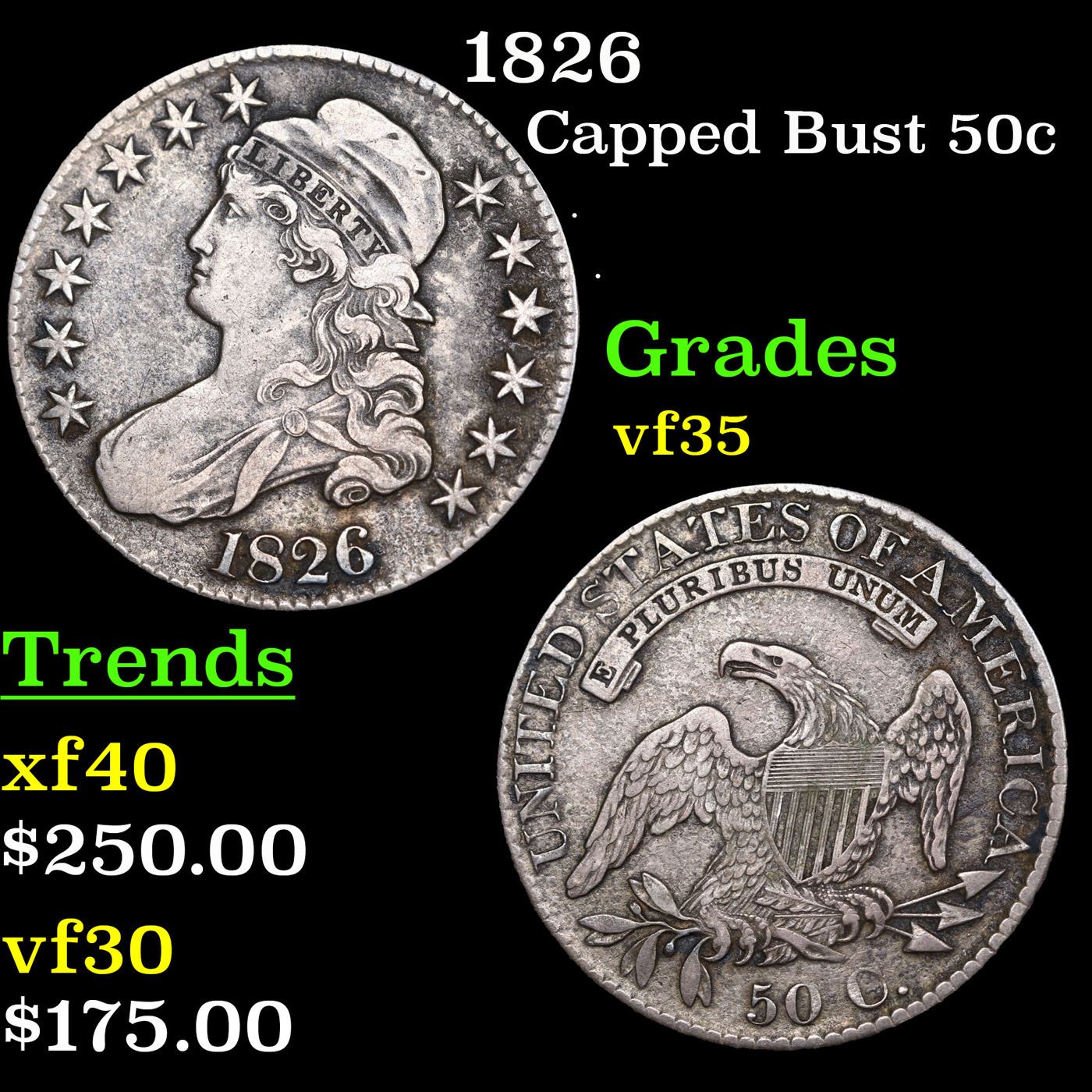 1826 Capped Bust Half Dollar 50c Grades vf++.