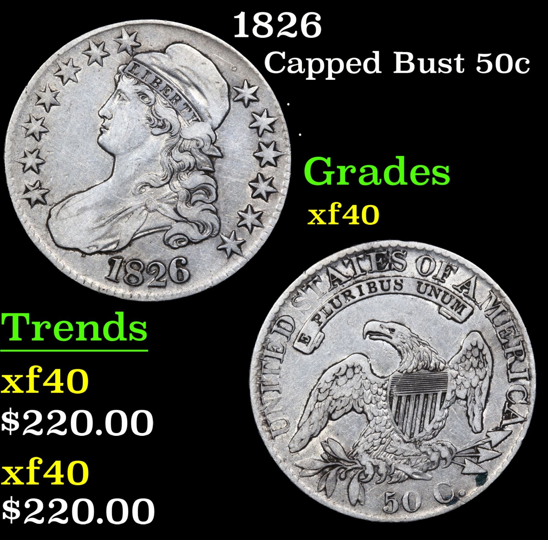1826 . . Capped Bust Half Dollar 50c Grades xf.