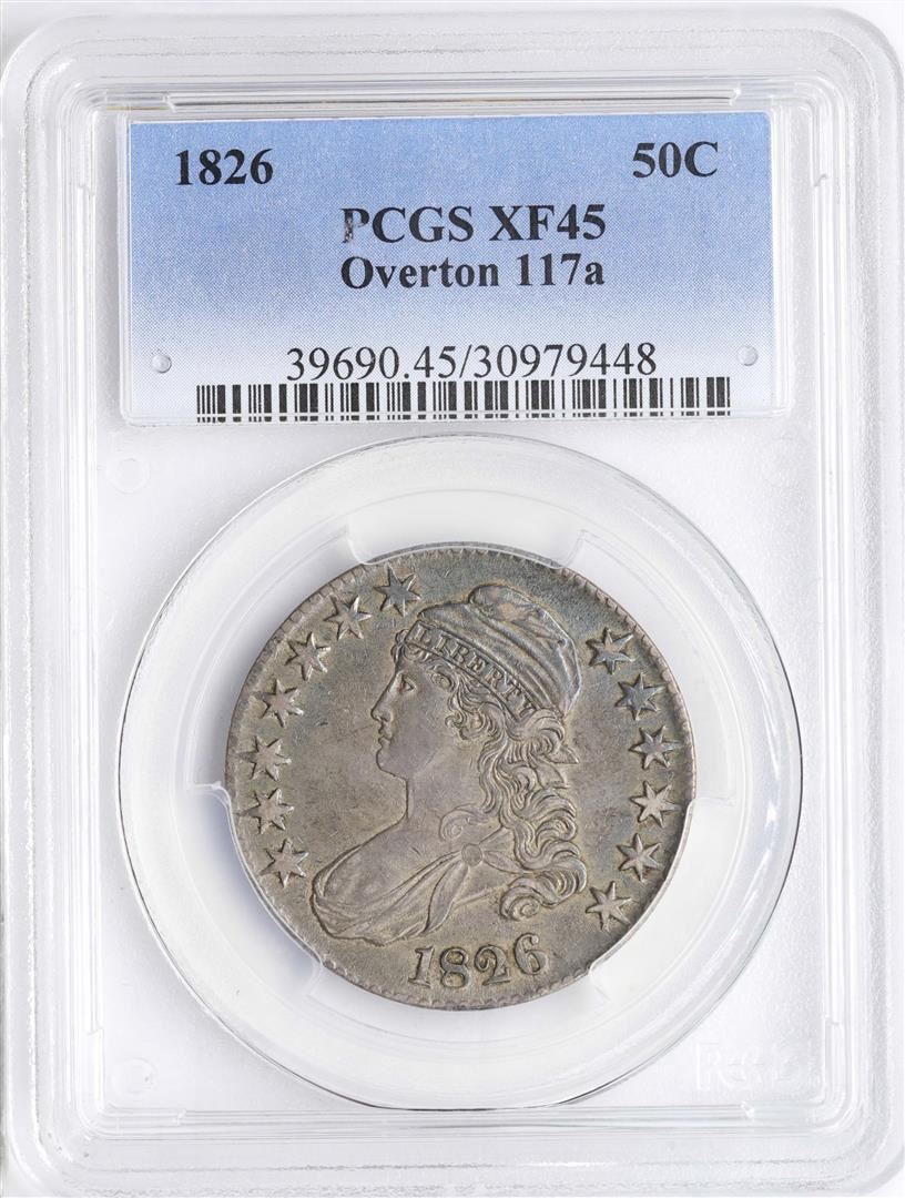 One 1826 Capped Bust Half Dollar Coin PCGS XF45 Overton 117a. PCGS Graded.