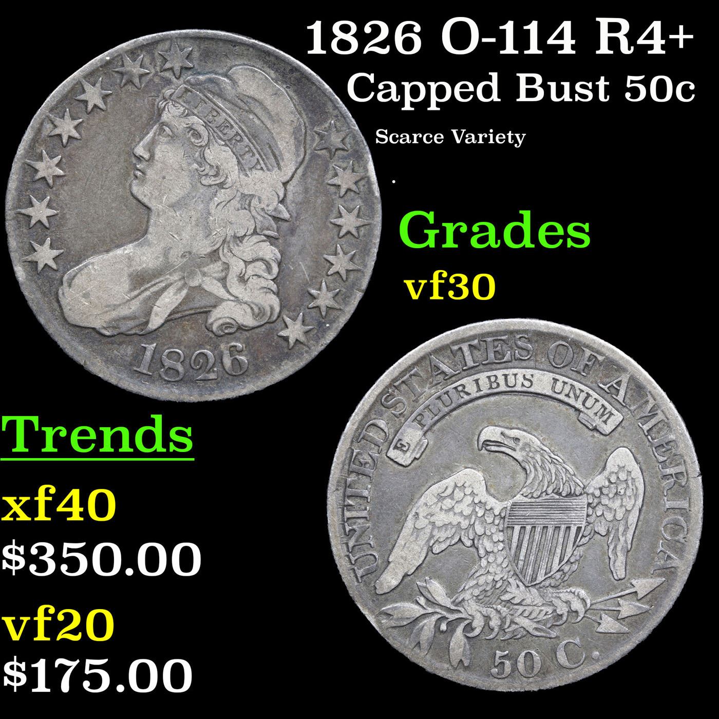 1826 O-114 R4+ Capped Bust Half Dollar 50c Grades vf++.
