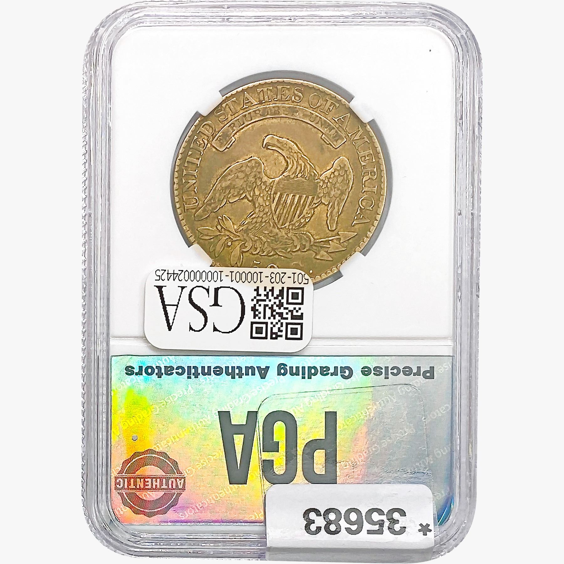 h. Since GSA cannot examine encapsulated coins or notes, they are sold “AS IS” without GSA’s grading opinion, and may not be returned for any reason. GSA shall not be liable for any patent or latent defect or controversy pertaining to or arising from any encapsulated Product. In any such instance, Bidder’s remedy, if any, shall be solely against the service certifying the Product.