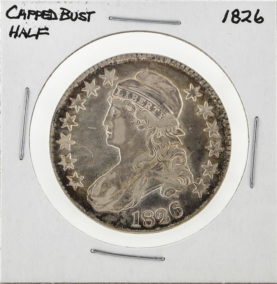 One 1826 Capped Bust Half Dollar Silver Coin.