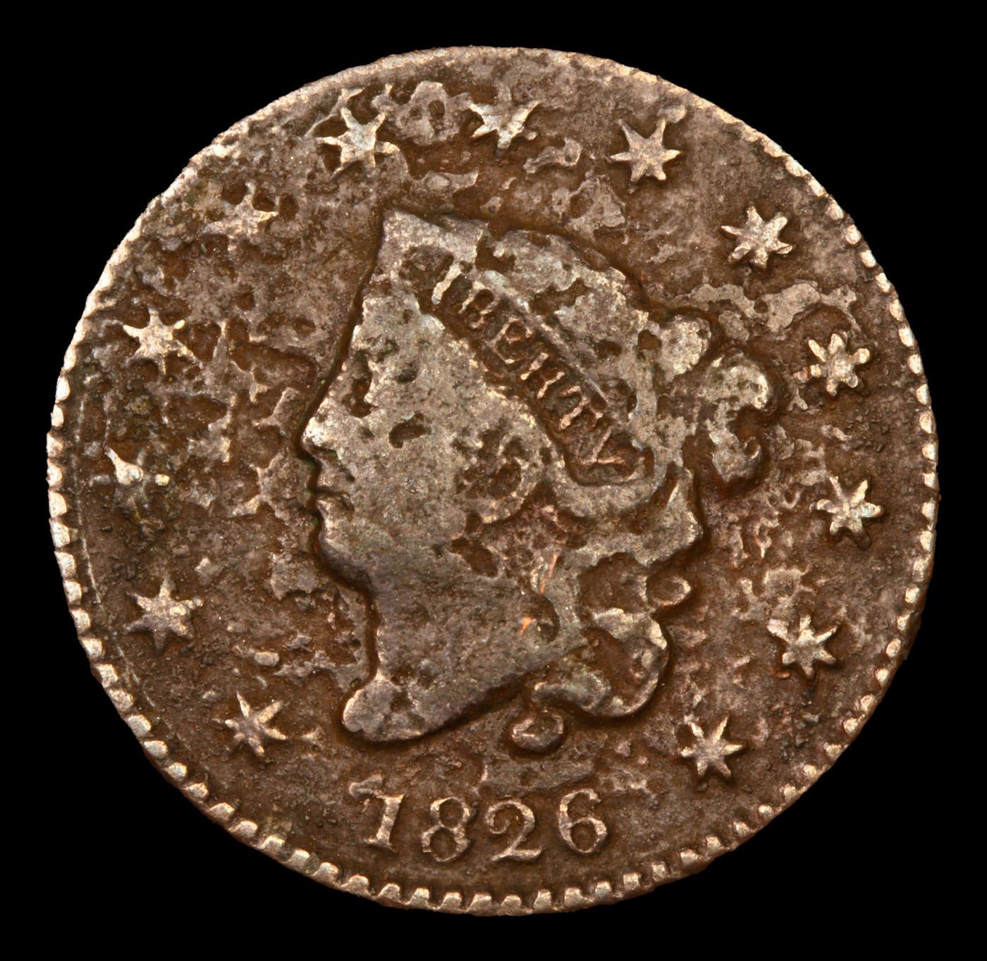 1826 Coronet Head Large Cent 1c Grades VF Details.