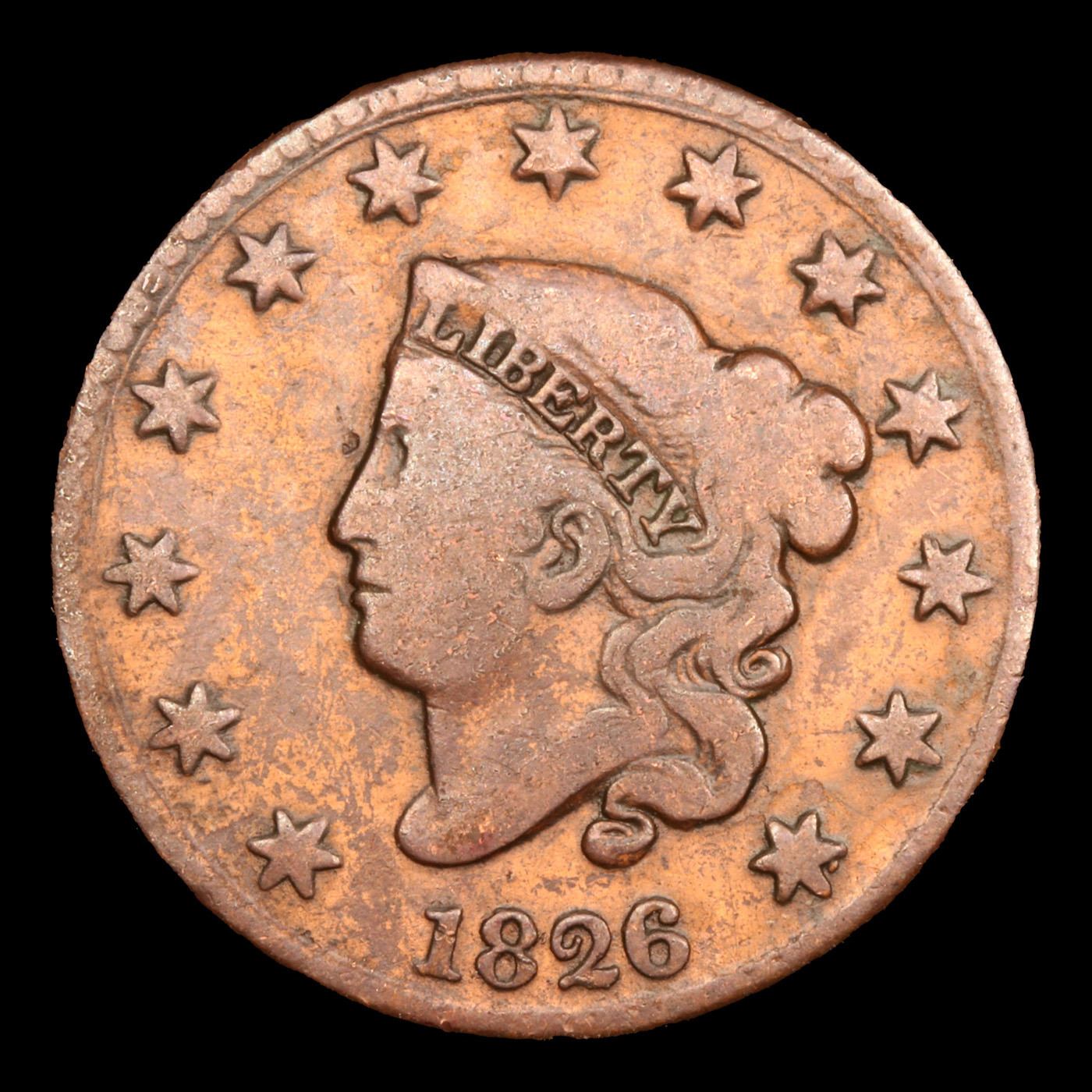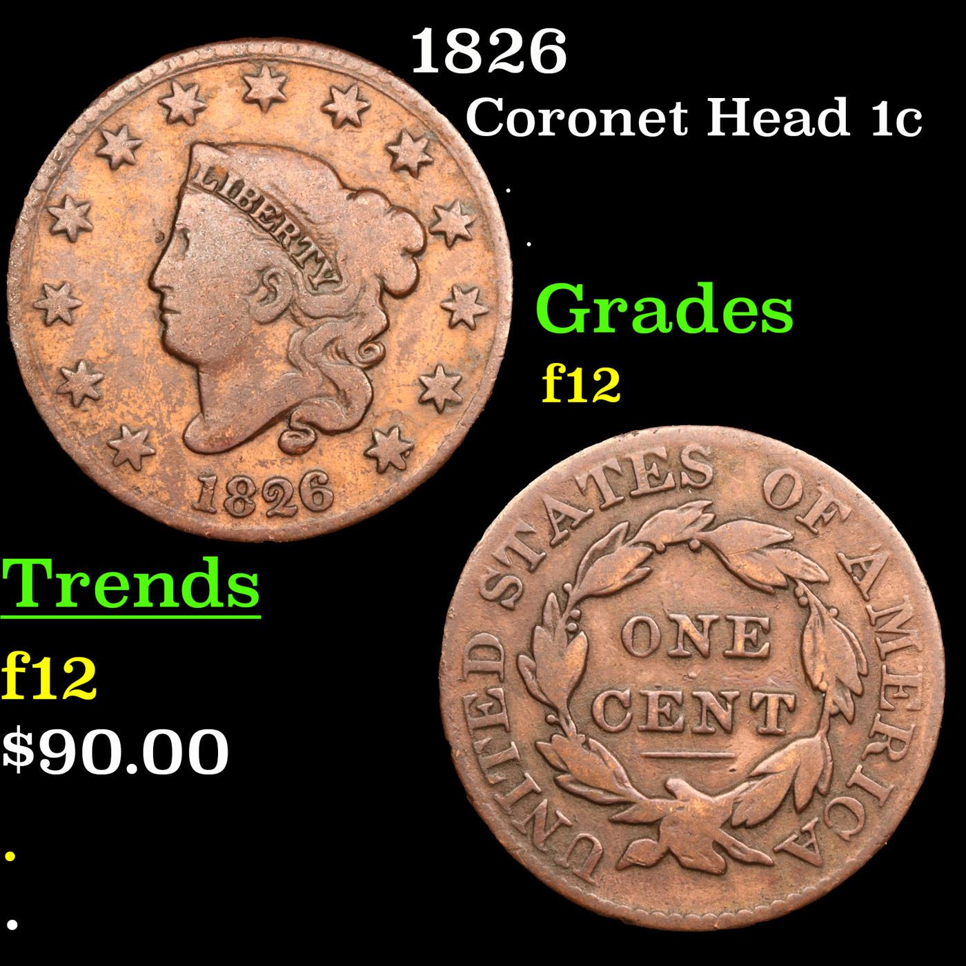 1826 Coronet Head Large Cent 1c Grades f, fine