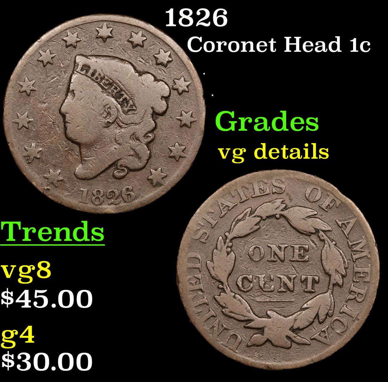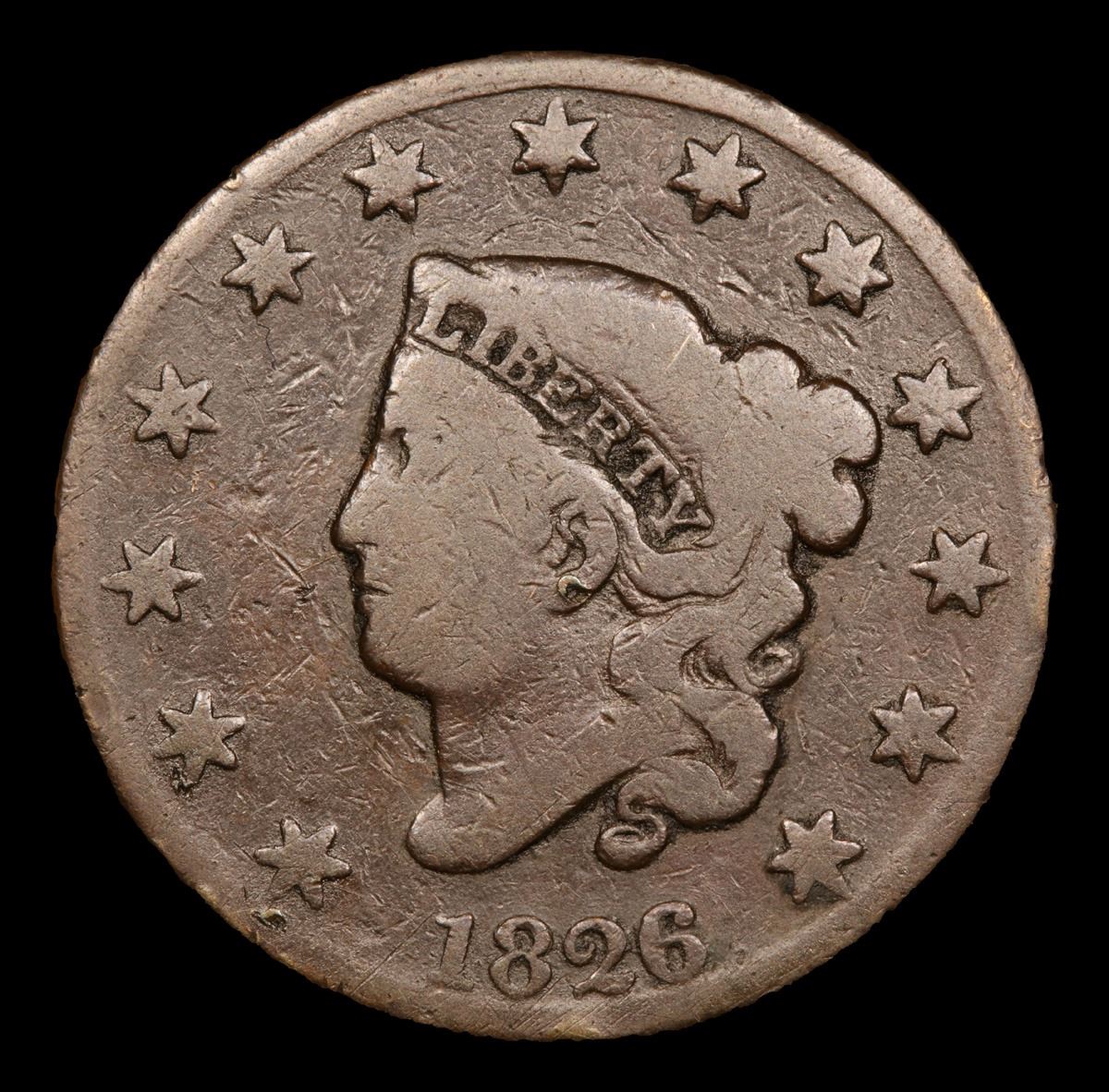 1826 . . Coronet Head Large Cent 1c Grades vg details.