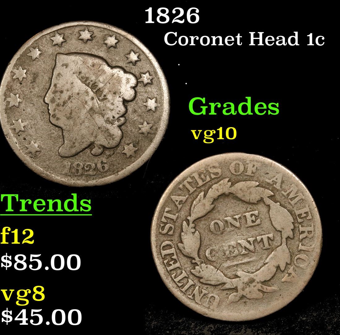 1826 . . Coronet Head Large Cent 1c Grades vg+.