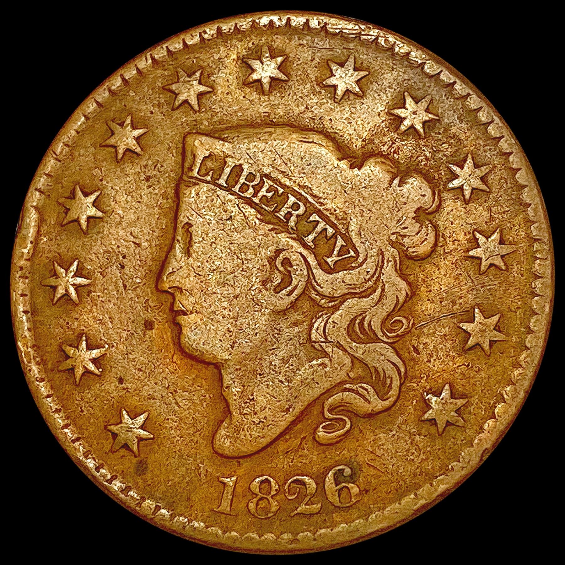 1826 Coronet Head Large Cent LIGHTLY CIRCULATED