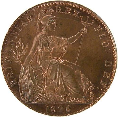 1826 Farthing ICG MS-66 Red and Brown. Fully struck with great lustre and over 80% red