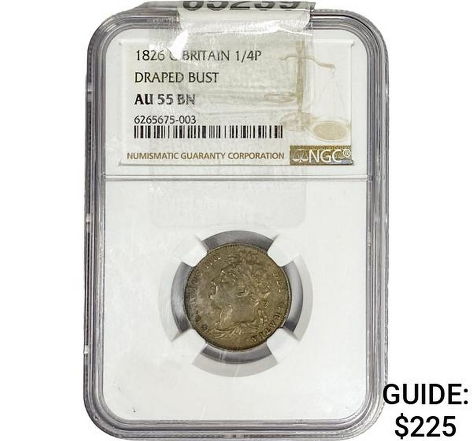 1826 G. Britain 1/4 Penny Drapped Bust NGC AU55 BN