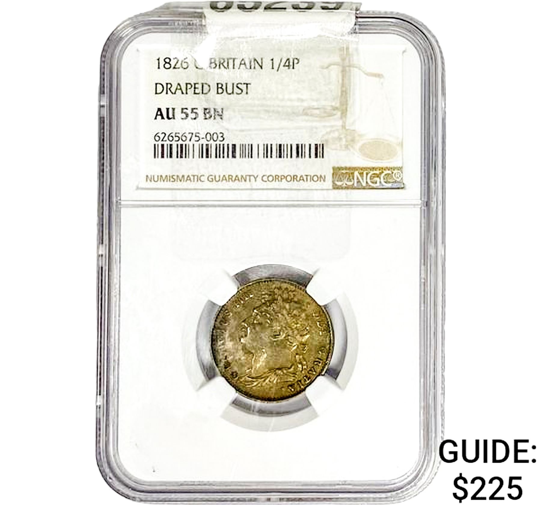 1826 G. Britain 1/4 Penny Drapped Bust NGC AU55 BN