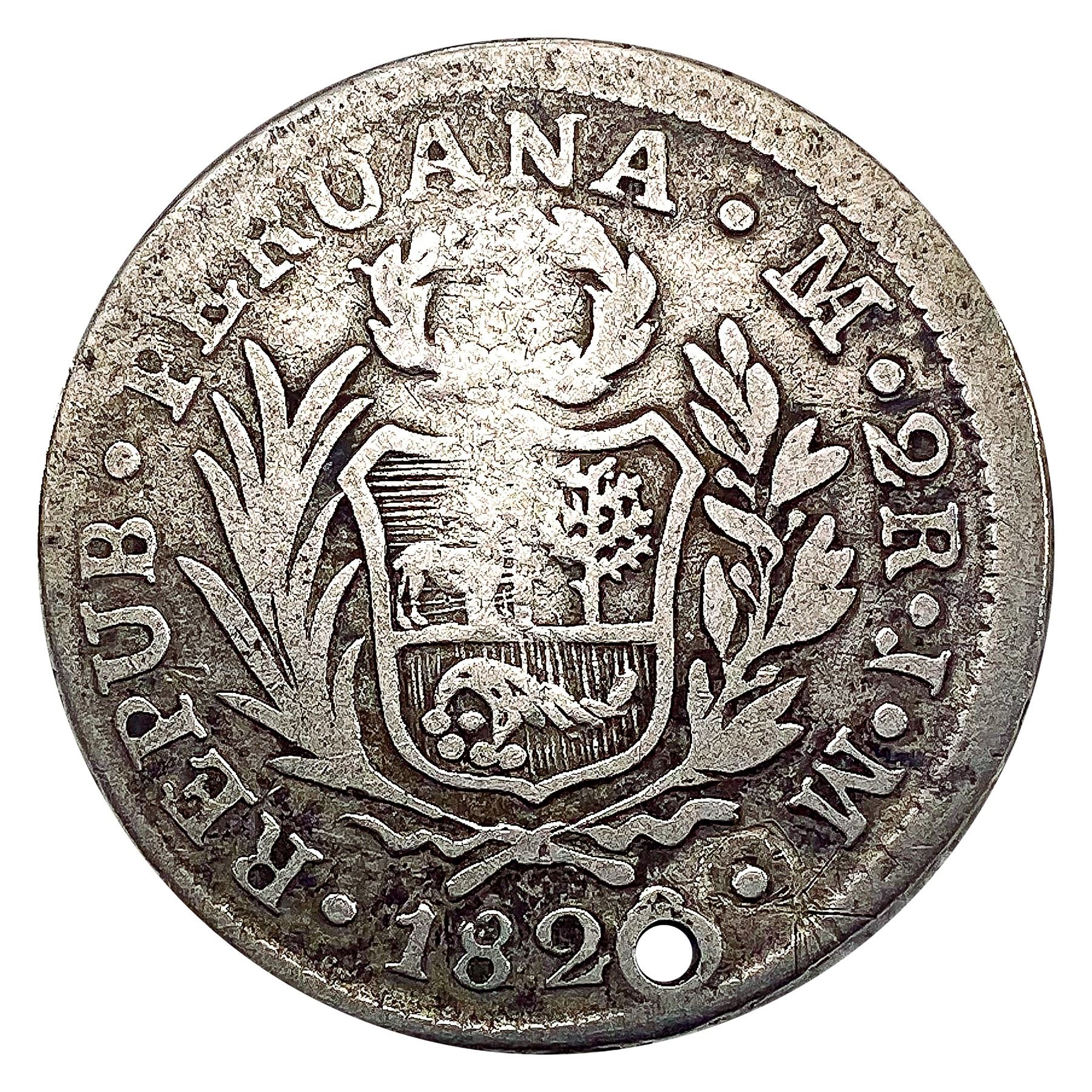 1826 JM Peru Silver 2 Reales (Holed) VF