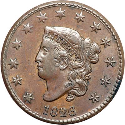 1826 N-3 R3. EF-45. Choice glossy chocolate brown with lustrous lighter steel brown toning in a few of the protected areas. Great eye appeal, virtually flawless. Just a bit of light wear on the highest points. E-MDS with two dentils fused above star 6. Removed from an NGC slab graded AU58 (NGC label included).