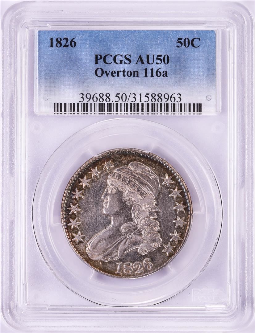 One 1826 Overton 116a Capped Bust Half Dollar Coin PCGS AU50. PCGS Graded.