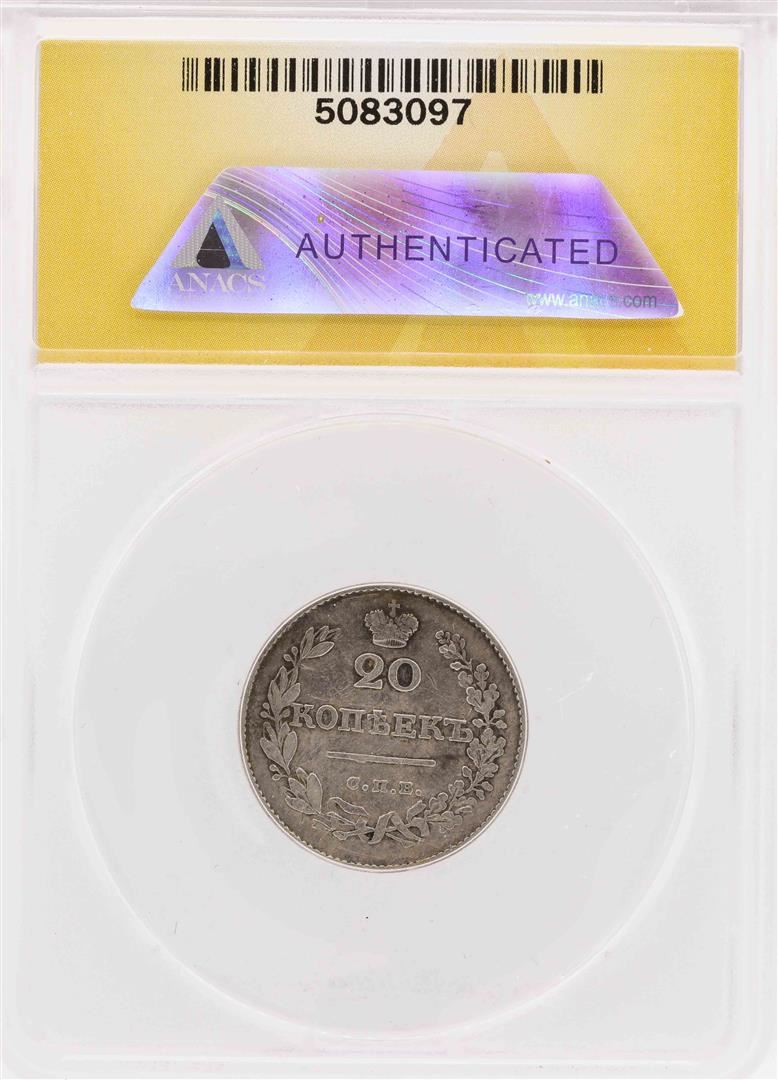 One 1826 Russia Nicholas I AR 20 Kopeks Coin ANACS F15. ANACS Appraised.