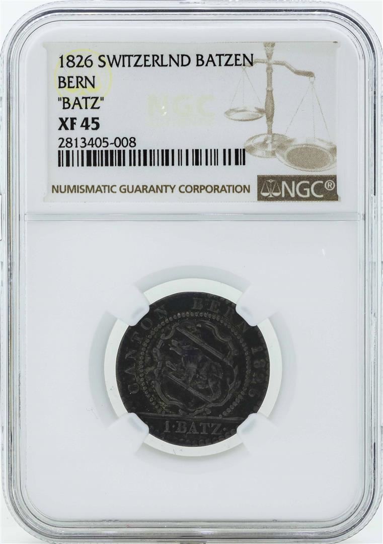 One 1826 Switzerland Batzen Coin NGC XF45. NGC Certified.