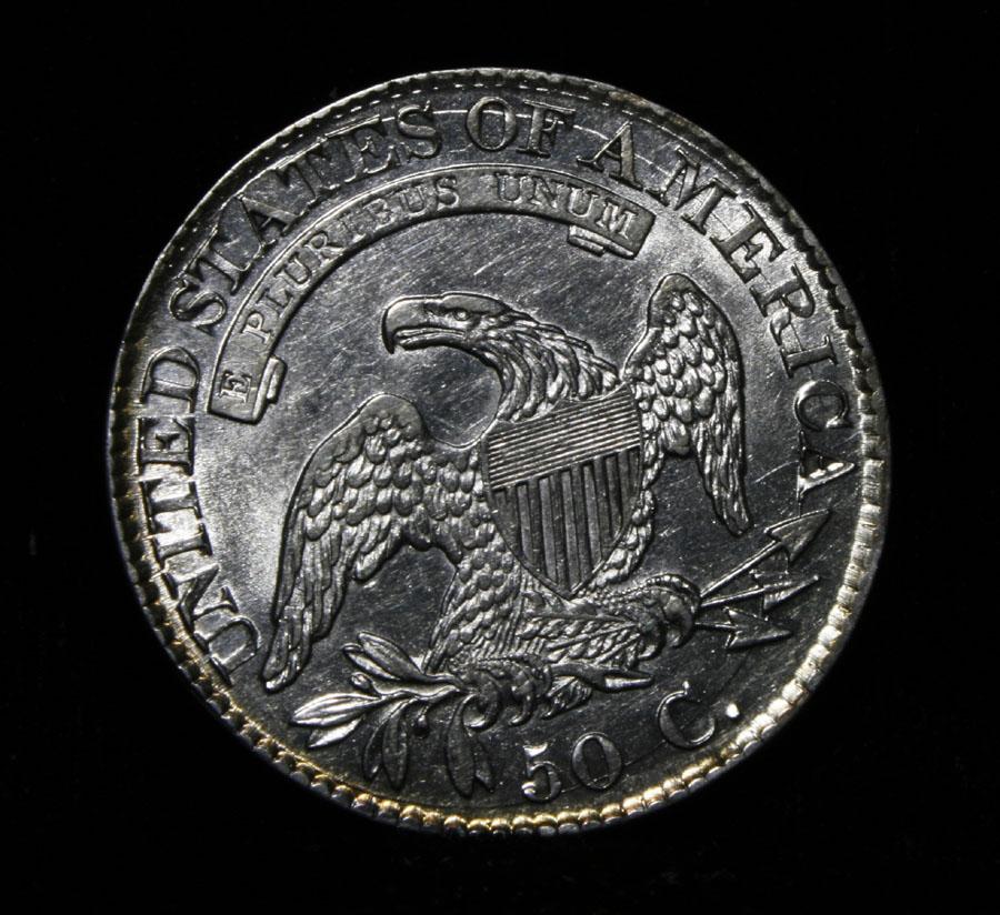 A lustrous and all Original Capped Bust 50c. Coin World's Coin Values lists ms60 at $1000 and ms62 at $1750. The Wholesale Greysheet lists ms60 at $850 and ms63 at $1750. Estimated Value $1000