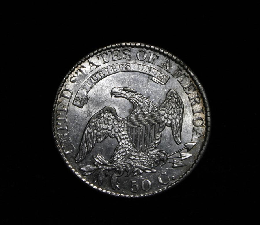 A lusterful and all Original Capped Bust 50c. Deep and strong strike. Coin World's Coin Values lists ms60 at $1000 and ms62 at $1750. The Wholesale Greysheet lists ms60 at $850 and ms63 at $1750. Estimated Value $1500