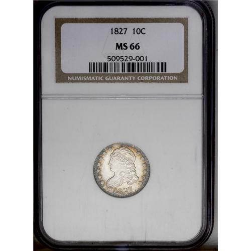 1827 10C MS66 NGC. JR-5, R.3. When the Mint resumed st 1827[10C] MS66 NGC.