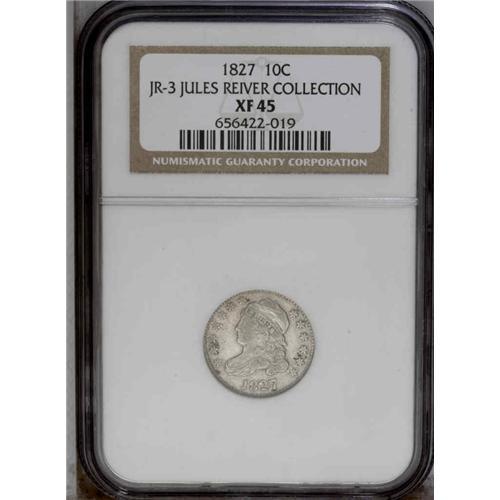 1827 10C XF45 NGC. JR-3, R.1. Pearl gray surfaces with 1827[10C] JR-3, R.1. Reiver state b. XF45 NGC