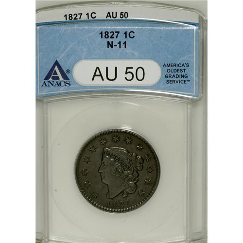 1827 1C AU50 ANACS. N-11. NGC Census: (6/87). PCGS