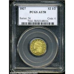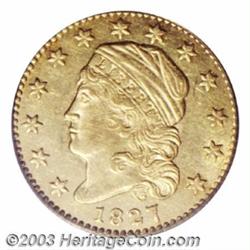<TABLE cellSpacing=0 cellPadding=0 width="100%" bgColor=#000000 border=0><TBODY><TR><TD width="100%"><TABLE cellSpacing=1 cellPadding=3 width="100%" border=0><TBODY><TR><TD width="100%" bgColor=#79735c><FONT face=arial color=#ffffff size=3><B>Description</B> </FONT></TD></TR><TR><TD width="100%" bgColor=#ffffff><FONT face=arial size=2><B>1827 $2 1/2 AU58 PCGS.</B></I> Bass-3025, Breen-6131, R.5. Surviving examples of the 2,800 quarter eagles produced in 1827 are similar in rarity to the 1826/5 despite the latter issue's lower mintage of only 760 pieces. Akers correctly asserts that the 1827 is an underrated date that is much more difficult to locate than the 1824/1 and 1825. While the typical 1827 quarter eagle is apt to show a weaker strike than its 1825 or 1826/5 counterpart, the present example is not unattractive from this viewpoint. There is slight incompleteness of detail on the hair over Liberty's head and on the left side of the shield and eagle's wing, but the balance of the features are crisply defined. A few small adjustment marks are noted at the center of the obverse. Bright yellow-golden color overall. A rarity of significant proportion that deserves special attention from advanced gold collectors.<BR><I>From The Dr. Douglas Roane Collection.</B></I> </FONT></TD></TR></TBODY></TABLE></TD></TR></TBODY></TABLE><BR><A name=PricesRealized></A><TABLE cellSpacing=0 cellPadding=0 width="100%" bgColor=#000000 border=0><TBODY><TR><TD width="100%"><TABLE cellSpacing=1 cellPadding=3 width="100%" border=0><TBODY><TR><TD width="100%" bgColor=#79735c><A name=PR><FONT face=arial color=#ffffff size=3><B>Previous Prices from Heritage Auctions</B> </FONT></A></TD></TR><TR><TD bgColor=#f6f6ed>No Prior Data Recorded </TD></TR><TR><TD bgColor=#ffffff><FONT face=arial size=1 ?>PLEASE NOTE: All prices realized reflect the final hammer price PLUS the buyer's premium in auctions that charge a buyer's premium. Each item has a notation at the top of the listing indicating whether that lot included a buyer's premium. Example: A item that sells with a final hammer price of $100 and a 20% buyer's premium will display with a price realized of $120. All information listed is intended to be as accurate as possible, but errors are possible. Please use this guide carefully and inform us of any inaccuracies. </FONT></TD></TR></TBODY></TABLE></TD></TR></TBODY></TABLE><BR><TABLE cellSpacing=0 cellPadding=0 width="100%" bgColor=#000000 border=0><TBODY><TR><TD width="100%"><TABLE cellSpacing=1 cellPadding=3 width="100%" border=0><TBODY><TR><TD width="100%" bgColor=#79735c colSpan=6><FONT face=arial color=#ffffff size=3><B>Price Guide*</B> </FONT></TD></TR><TR bgColor=#f6f6ed><TD align=middle><B>Grade</B> </TD><TD align=middle><B>Coin World<BR>(Trends)</B> </TD><TD align=middle><B>Numismedia<BR>Retail</B> </TD><TD align=middle><B>Numismedia<BR>Wholesale</B> </TD><TD align=middle><B>Coin<BR>Universe</B> </TD><TD align=middle><B>Heritage<BR>Value Index</B> </TD></TR><TR bgColor=#ffffff><TD align=middle>55</TD><TD align=right>$14,000.00</TD><TD align=right>---</TD><TD align=right>$9,125.00</TD><TD align=right>$9,650.00</TD><TD align=right>$8,938.33</TD></TR><TR style="FONT-WEIGHT: bold" bgColor=#cccfdd><TD align=middle>58</TD><TD align=right>$16,000.00</TD><TD align=right>---</TD><TD align=right>$13,500.00</TD><TD align=right>---</TD><TD align=right>$10,957.00</TD></TR><TR bgColor=#ffffff><TD align=middle>60</TD><TD align=right>$20,000.00</TD><TD align=right>---</TD><TD align=right>$16,250.00</TD><TD align=right>$16,750.00</TD><TD align=right>$12,925.00</TD></TR><TR bgColor=#ffffff><TD colSpan=6><FONT size=1>*All information listed is intended to be as accurate as possible, but errors are possible. No item may be returned or refused based on this information which is provided as a service to our customers. You should contact each pricing source directly to determine the accuracy of this information. </FONT></TD></TR></TBODY></TABLE></TD></TR></TBODY></TABLE><BR><TABLE cellSpacing=0 cellPadding=0 width="100%" bgColor=#000000 border=0><TBODY><TR><TD width="100%"><TABLE cellSpacing=1 cellPadding=3 width="100%" border=0><TBODY><TR><TD width="100%" bgColor=#79735c><FONT face=arial color=#ffffff size=3><B>Population Guide</B> </FONT></TD></TR><TR bgColor=#ffffff><TD align=middle><!-- Begin Output of Population Grid--><TABLE cellSpacing=0 cellPadding=0 width="100%" border=0><TBODY><TR><TD vAlign=center><TABLE cellSpacing=0 width="100%" border=1 cellsadding="3"><TBODY><TR><TD vAlign=center><TABLE cellSpacing=0 cellPadding=3 width="100%" border=1><TBODY><TR><TD vAlign=center align=middle bgColor=#f0f1e8 colSpan=2 <CENTER><FONT face=Arial size=2><B>PCGS Pop </B></FONT><CENTER></CENTER></TD><TD vAlign=center align=middle bgColor=#f0f1e8 colSpan=2><CENTER><FONT face=Arial size=2><B>NGC Pop</B></CENTER></FONT></TD></TR><TR><TD vAlign=center><FONT face=Arial size=2>(58)</FONT> </TD><TD vAlign=center align=right><FONT face=Arial size=2>3</FONT> </TD><TD vAlign=center><FONT face=Arial size=2>(58)</FONT> </TD><TD vAlign=center align=right><FONT face=Arial size=2>4</FONT> </TD></TR><TR><TD vAlign=center><FONT face=Arial size=2>(>58)</FONT> </TD><TD vAlign=center align=right><FONT face=Arial size=2>14</FONT> </TD><TD vAlign=center><FONT face=Arial size=2>(>58)</FONT> </TD><TD vAlign=center align=right><FONT face=Arial size=2>16</FONT> </TD></TR></TBODY></TABLE></TD></TR></TBODY></TABLE></TD></TR></TBODY></TABLE><!-- End Output of Population Grid--> Important notice: Heritage usually auctions material at the rate of 200-250 lots per hour. On some occasions eBay Live bid software or the Internet may not be able to keep up with the pace of the auction. We recommend placing a realistic absentee bid now as insurance to avoid disappointment. Occasionally the auctioneer may eliminate or reject an eBay Live bid, and the auctioneer may also reopen a lot after the close of the eBay live bidding (usually because we missed an audience bid), and ma