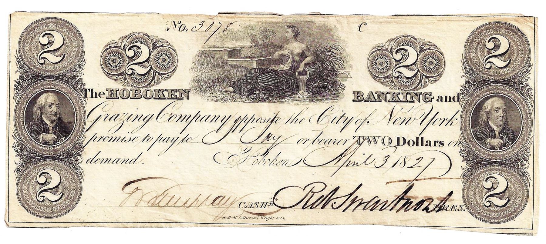 1827 $2 Hoboken Banking, NJ Obsolete Bank Note