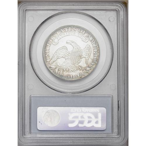 <B>1827<50C> Curl Base 2 AU58 PCGS.</B></I> O-146, R.2. Incongruously certified as a Square Base 2 by PCGS. This lustrous slider features lovely aquamarine and walnut-brown peripheral patina. Struck from clashed dies. <BR><BR><B>Important notice:</B> Heritage usually auctions material at the rate of 200-250 lots per hour. On some occasions eBay Live bid software or the Internet may not be able to keep up with the pace of the auction. We recommend placing a realistic absentee bid now as insurance to avoid disappointment. Occasionally the auctioneer may eliminate or reject an eBay Live bid, and the auctioneer may also reopen a lot after the close of the eBay live bidding (usually because we missed an audience bid), and may reject your bid even if it shows you as the winning bidder. By bidding via eBay Live, you agree that Heritage may award the lot to another bidder at its sole discretion under the circumstances described above or any other reasonable circumstances. Since eBay bids are not shown to us until we open the lot on the floor, we treat those bids just like floor bids. In most cases the floor responds before the eBay bid is presented to us, due to Internet lag time, so for consistency we have made it a policy that floor bids are always considered first over tie eBay live bids. Also please note that all Heritage lots purchased through eBay Live carry a 20% Buyer's Premium. Please make sure you read the Terms and Conditions before you bid. This lot is being auctioned in conjunction with a live floor auction by Heritage Galleries & Auctioneers. All final auction and invoice information will be supplied by Heritage Galleries & Auctioneers, and all other information should be considered preliminary. Lot:1958 <BR><BR><B>Winning Notification and Billing:</B> After the FINAL session in this auction is complete, Heritage will send e-mail and snail mail invoices. This process normally takes several days. All final auction and invoice information will be supplied by Heritage Galleries & Auctioneers, and all other information should be considered preliminary. <BR><BR>This auction will be conducted on a live auction floor and over the Internet through eBay Live. If you choose to place an absentee bid, please take a moment to <font color='#0000ff'><u><a href='http://pages.ebay.com/liveauctions/help/before/laabsentee.html'>learn how eBay Live absentee bidding works</a></u></font><font color='#000000'>