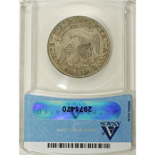 1827 50C Square Base 2 AU50 ANACS. O-104. NGC Cens