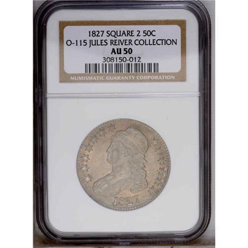 1827 50C Square Base 2 AU50 NGC. O-115, R.2. Attribute 1827[50C] Square Base 2 AU50 NGC.