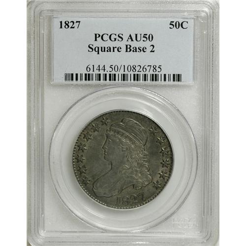1827 50C Square Base 2 AU50 PCGS. O-110, R-4. PCGS