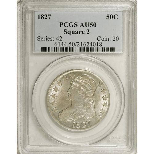1827 50C Square Base 2 AU50 PCGS. O-139, R-4. PCGS