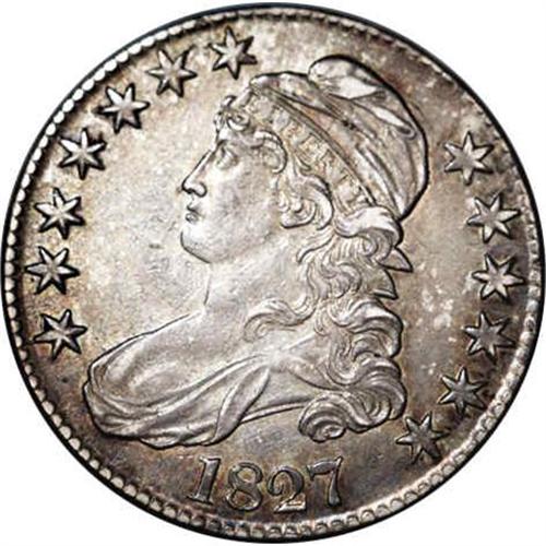 1827 50C Square Base 2 AU58 NGC. O-104, R.1. Rich vari 1827[50C] Square Base 2 AU58 NGC.