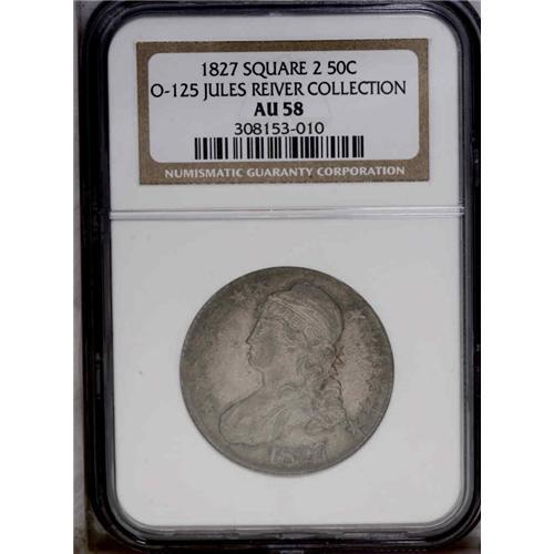 1827 50C Square Base 2 AU58 NGC. O-125, R.3. An attrac 1827[50C] Square Base 2 AU58 NGC.