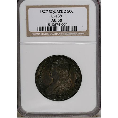 1827 50C Square Base 2 AU58 NGC. O-138, R.4. Parallel