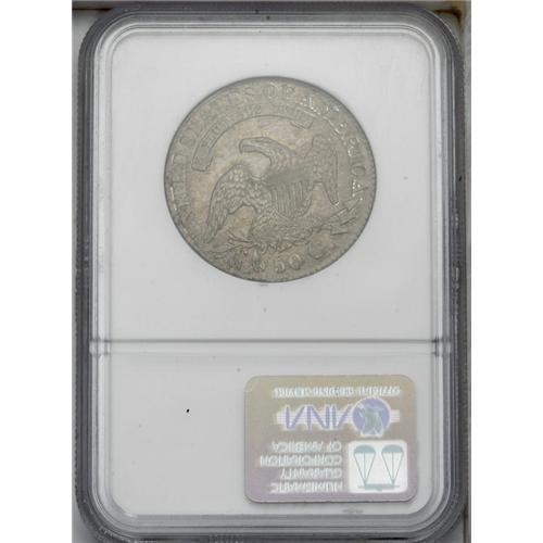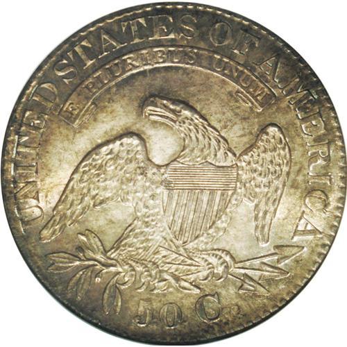 <B>1827<50C> Square Base 2 MS64 NGC.</B></I> O-120a, R.4. Dappled olive-russet shadings overlay a base of lavender-gray toning on both sides of this originally preserved example. Free of criticism, the strike is needle sharp in all areas and as close to full as we have seen on virtually any 1827 Half Dollar. There are no outwardly distracting abrasions, but accuracy compels us to mention a planchet void (as struck) in the left obverse field inside star 3. Probable Condition Census standing for the Overton-120 dies.