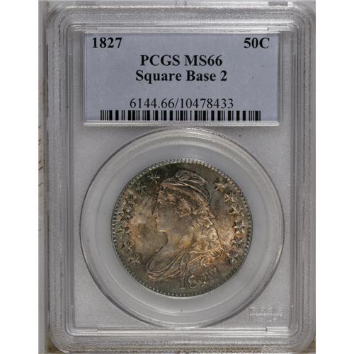 1827 50C Square Base 2 MS66 PCGS. O-133, R.4. Orange-r