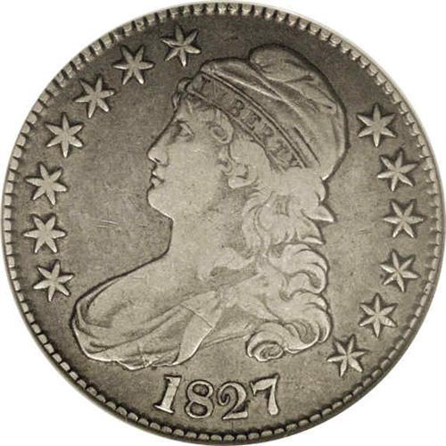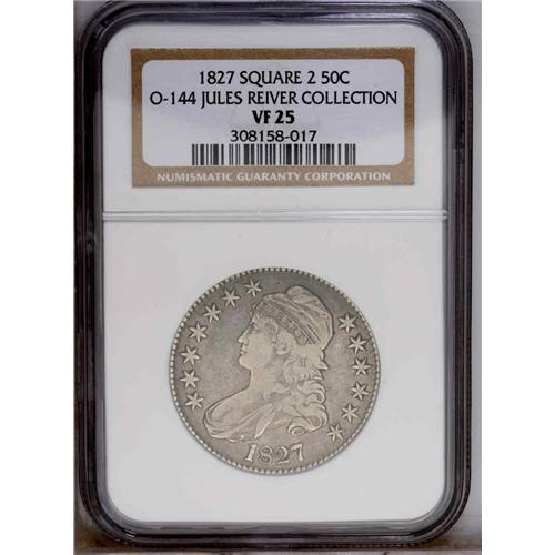 1827 50C Square Base 2 VF25 NGC. O-144, R.5. This rare 1827[50C] Square Base 2 VF25 NGC.