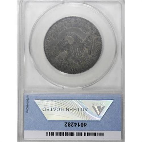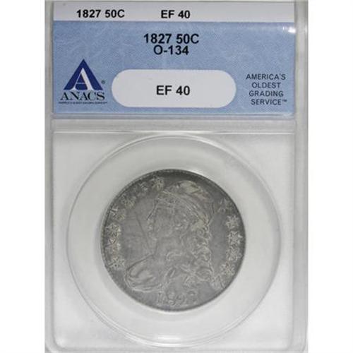 <B>1827 50C Square Base 2 XF40 ANACS.</B></I> O-134, R.4. Deep steel-gray toning blankets this moderately circulated better variety Bust half. A loupe reveals a subdued hair-thin mark beneath the eye.<BR><BR><B>Coin Engraver:</B> John Reich<BR><BR><b>Shipping:</b> Coins & Currency (<a target="_blank" href="http://www.heritageauctions.com/common/shipping.php">view shipping information</a>)