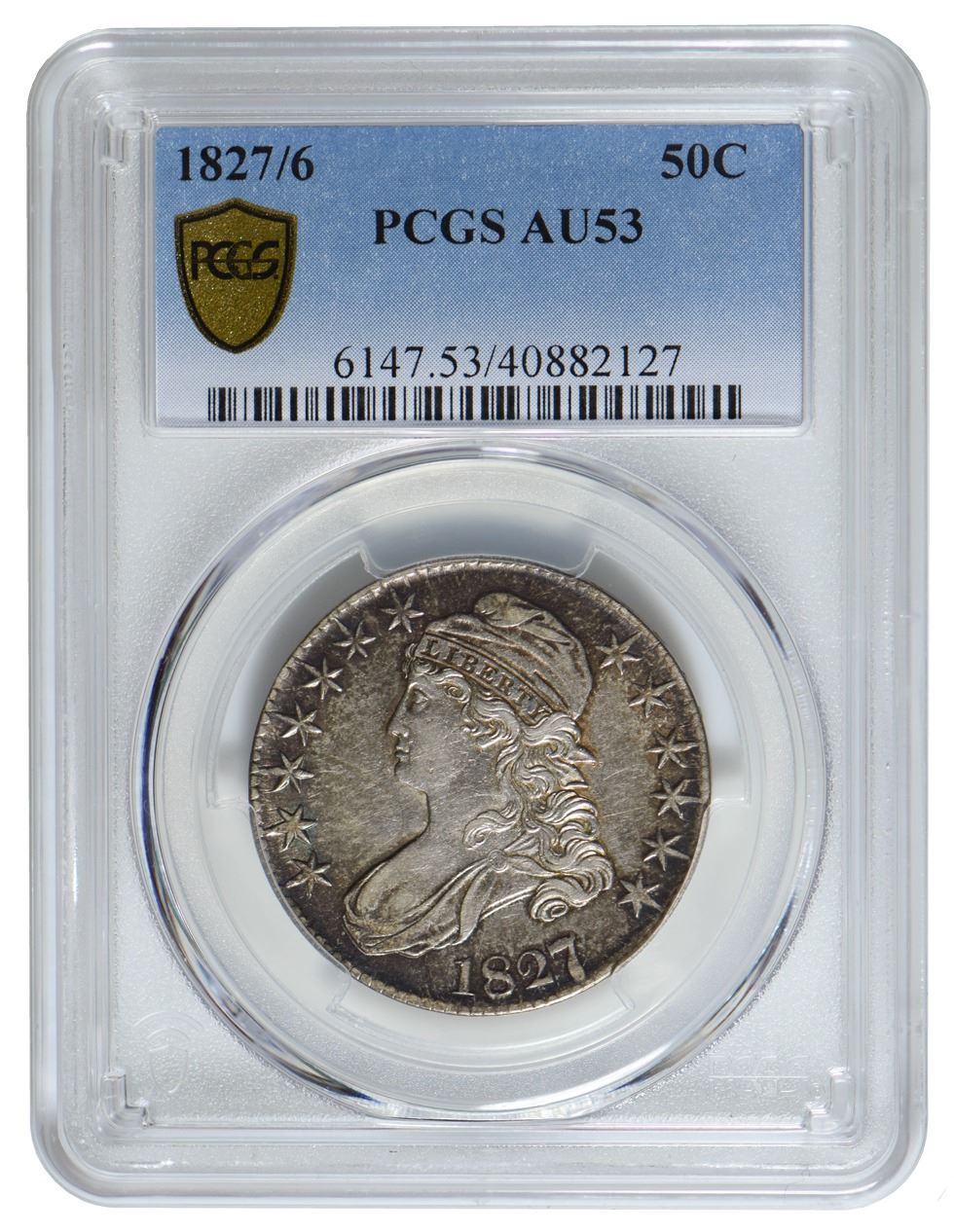 One 1827/6 Capped Bust Half Dollar PCGS AU53.