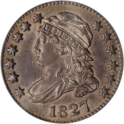 <b>1827 Capped Bust Dime. PCGS graded MS62.</b> Nicely toned to an even pewter gray color, with both surfaces fresh appearing, and clear detail in the strike <b>(PCGS # 4504)</b>