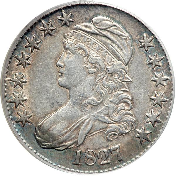 1827 Capped Bust Half Dollar. Square base 2. PCGS graded EF-45. Nicely toned (PCGS # 6144) .