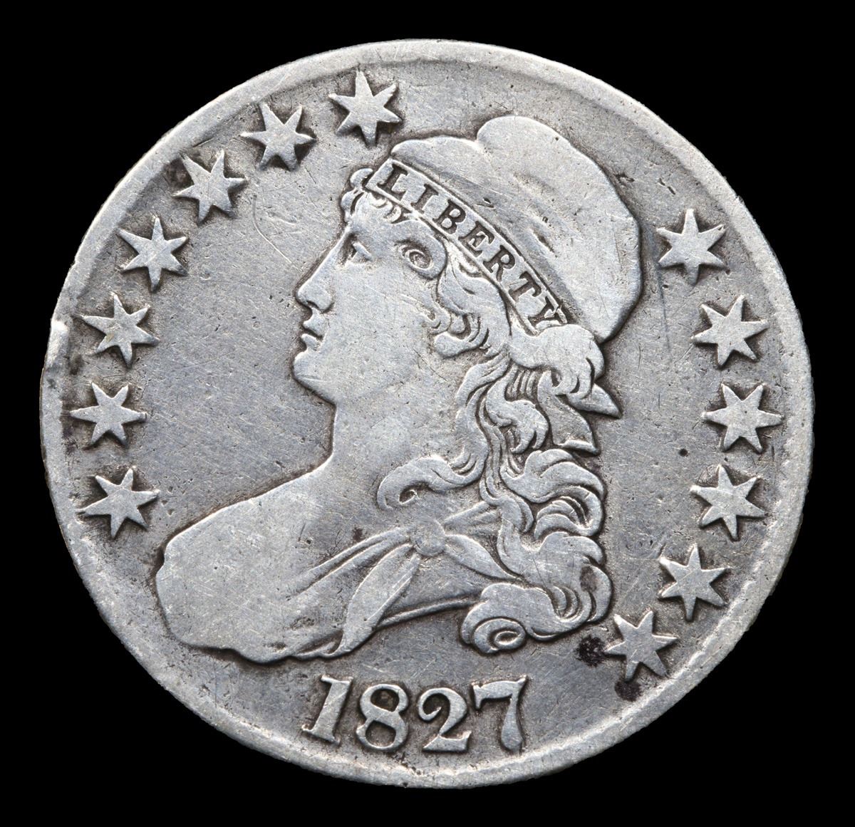 1827 Square base 2 . Capped Bust Half Dollar 50c Grades vf++.