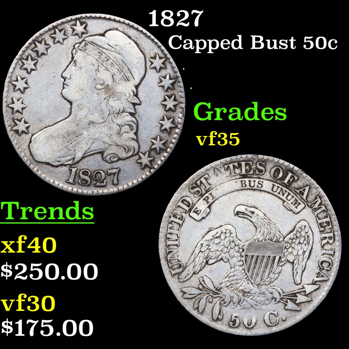 1827 Capped Bust Half Dollar 50c Grades vf++.