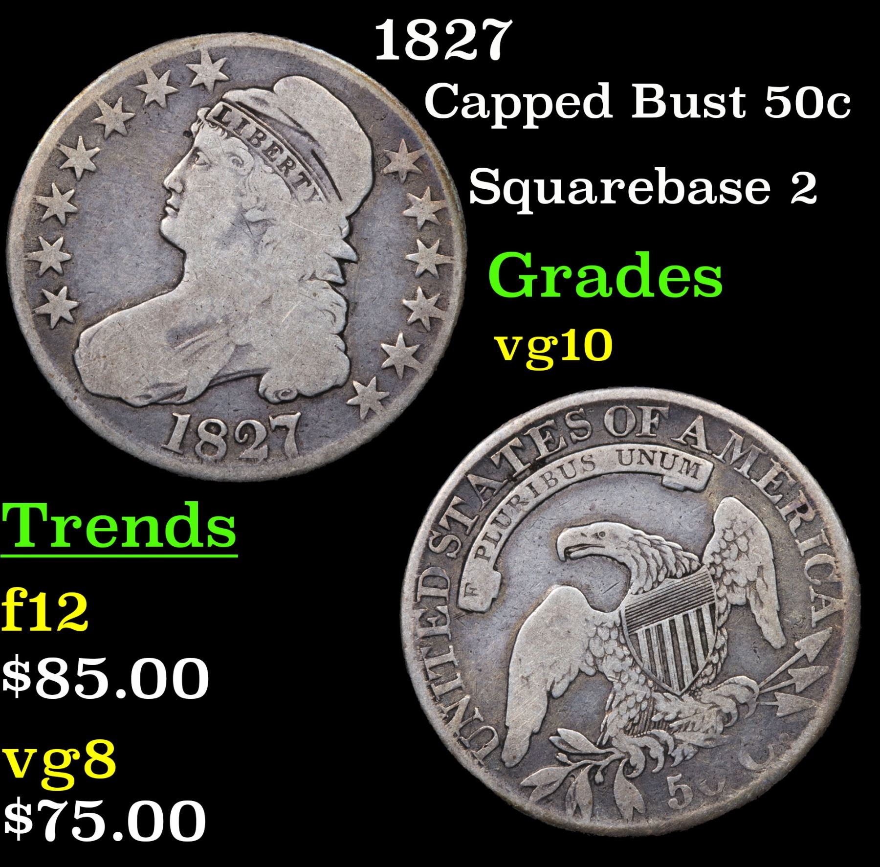 1827 Capped Bust Half Dollar 50c Grades vg+.