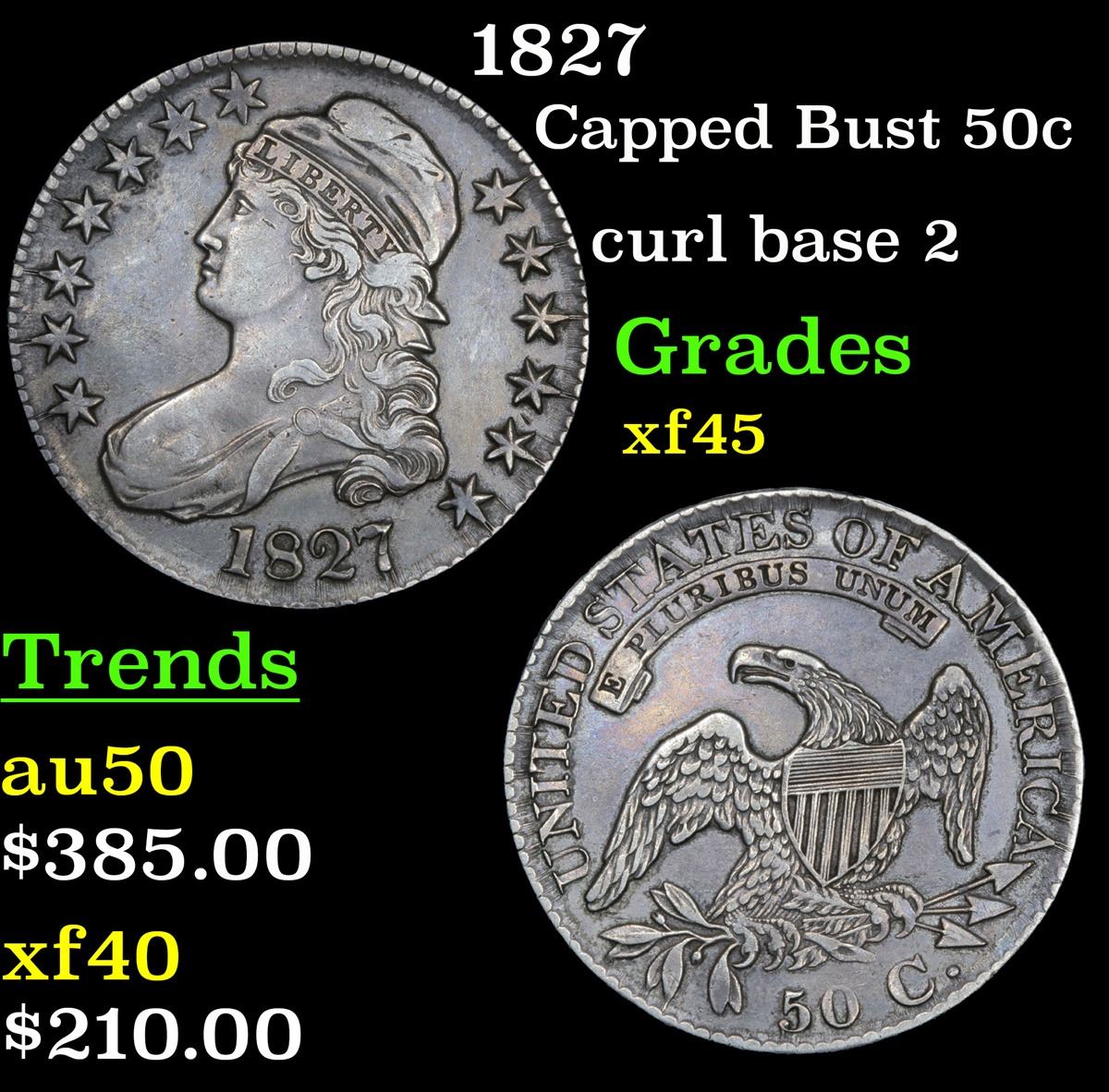 1827 Capped Bust Half Dollar 50c Grades xf+.