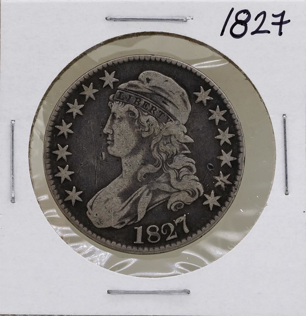 One 1827 Capped Bust Half Dollar Coin.